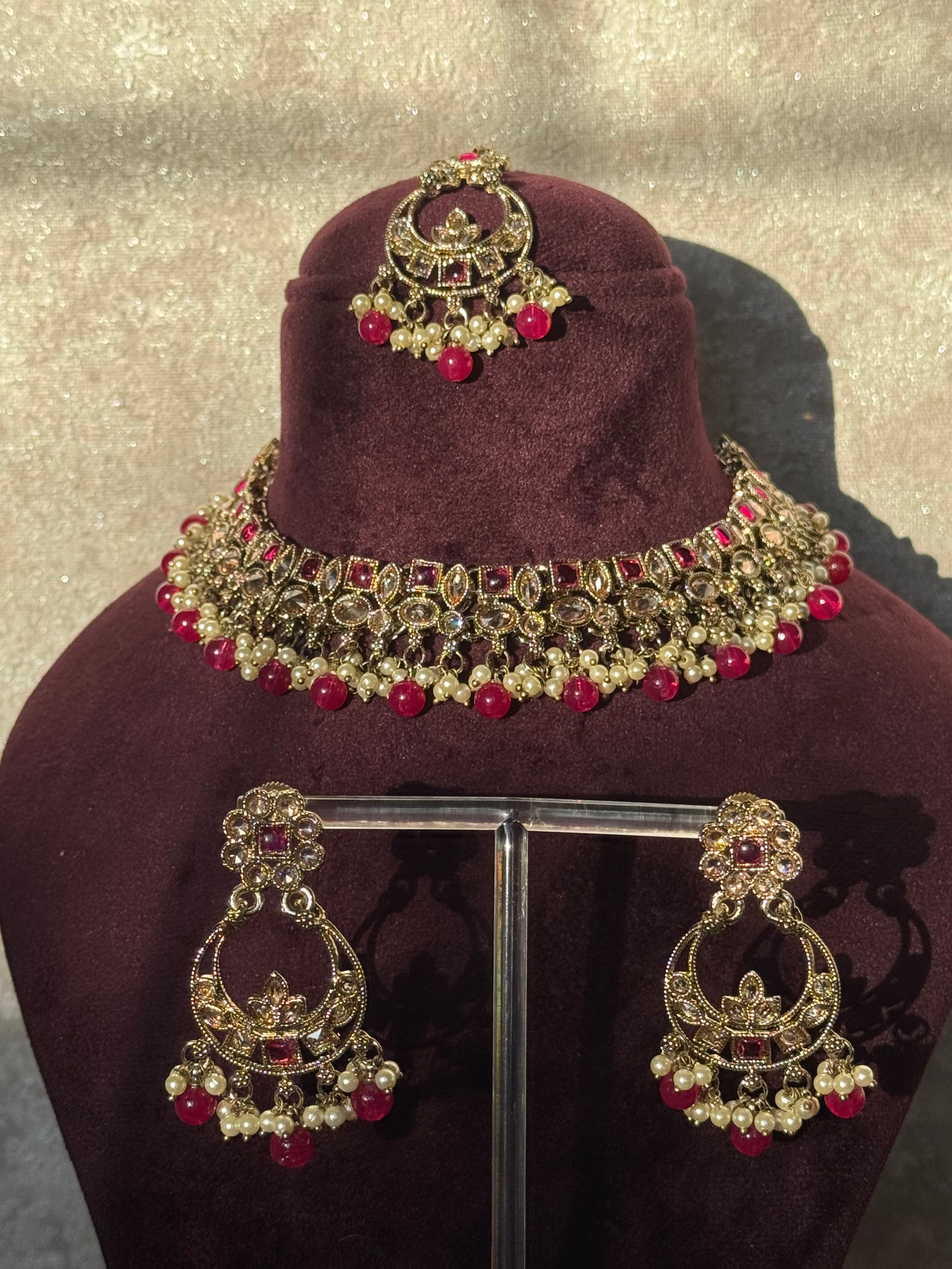 Crystal Champagne Stone Necklace Set (with earrings & tikka)