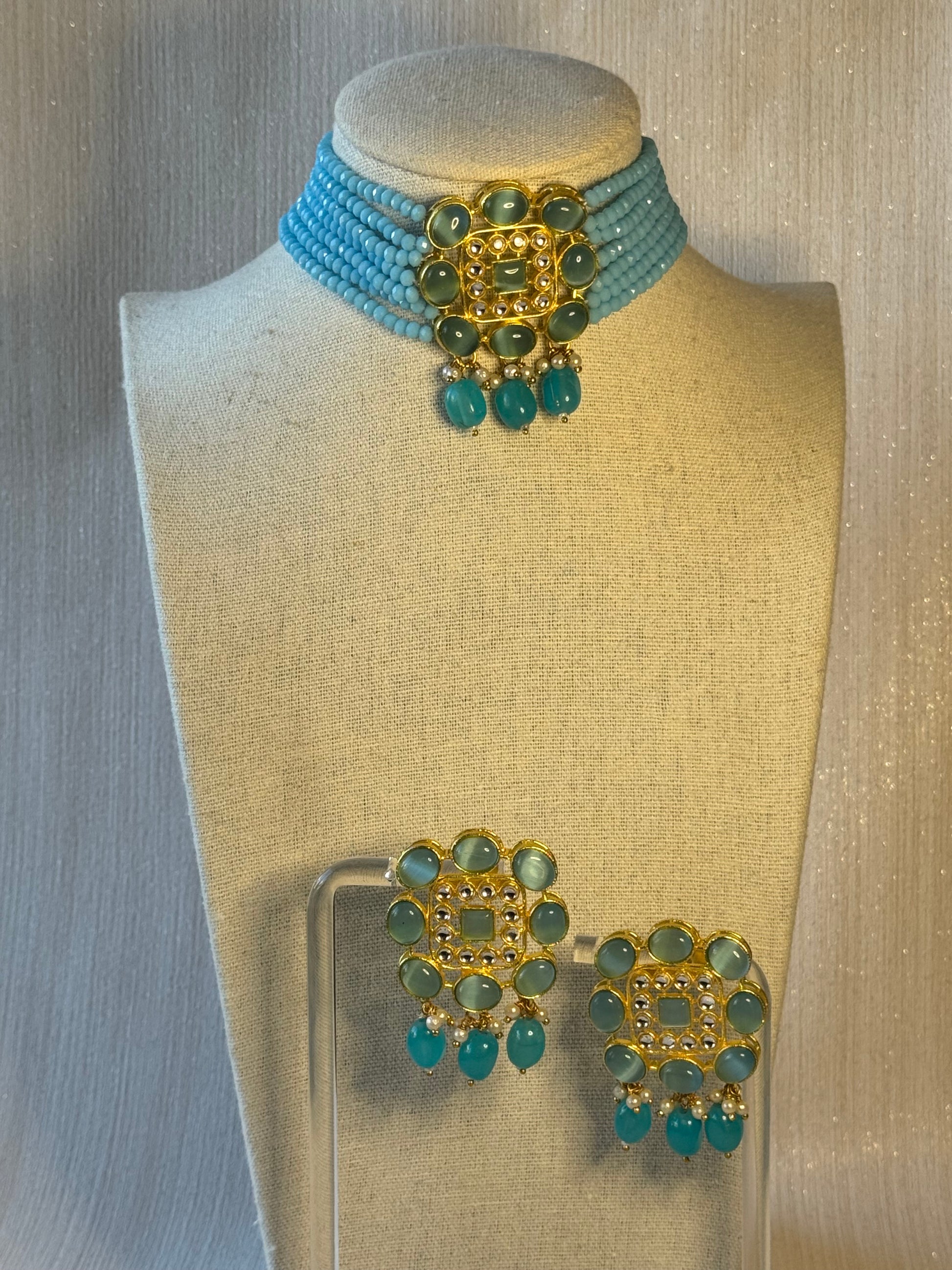 A beautiful sky blue choker set from The Tara Collection, designed to add elegance and tradition to your look.